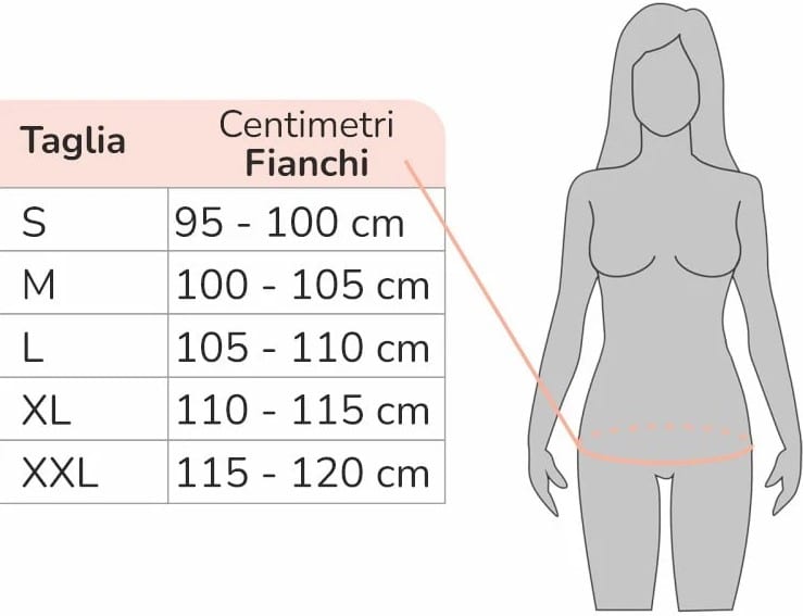 Predi la misura del tuo giro fianchi, come in figura, sotto la pancia